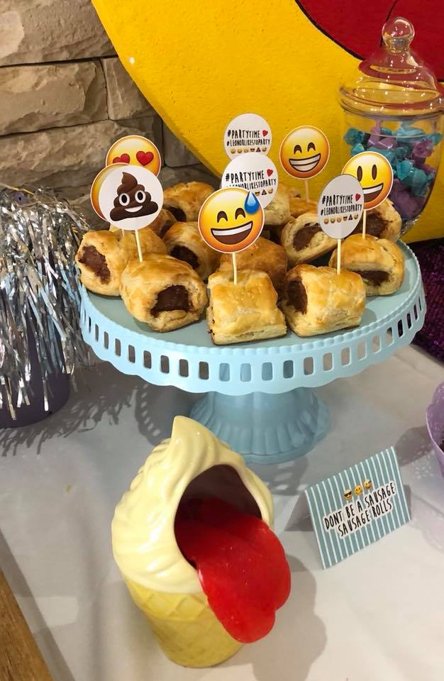 Birthday girl’s favourite colours were used, along with her favourite emoji, and snack treats. These kids were not into too much sugar, so we swapped those out for “don’t be a sausage” sausage rolls and “happy face” chicken sliders for everyone! Another favourite snack any time any day of the week is popcorn!